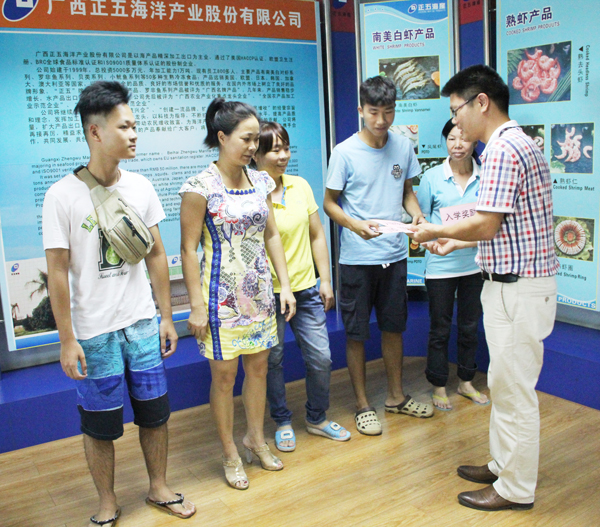 8月24日,正五海產公司召開員工子女考上大學本科獎勵座談會,對在2015年高考中取得優(yōu)異成績3名員工子女按照《職工子女考上大學本科入學獎勵辦法》進行了獎勵。