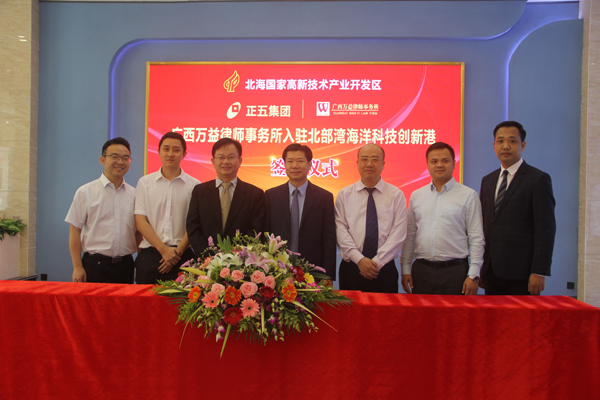 3月28日上午,在北部灣海洋科技創(chuàng)新港招商中心,舉行廣西萬益律師事務(wù)所入駐北部灣海洋科技創(chuàng)新港的簽約儀式。廣西正五集團(tuán)董事長(zhǎng)黃禮雄、副總裁榮培彥,廣西萬益律師事務(wù)所主任王瑩文、所管委會(huì)主任凌斌、執(zhí)行主任張海波等出席簽約儀式。